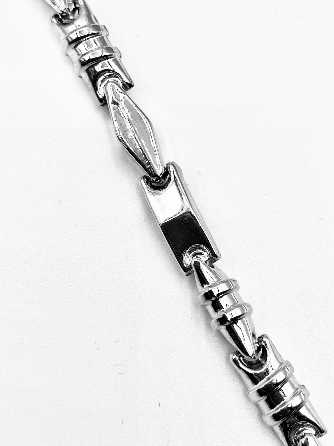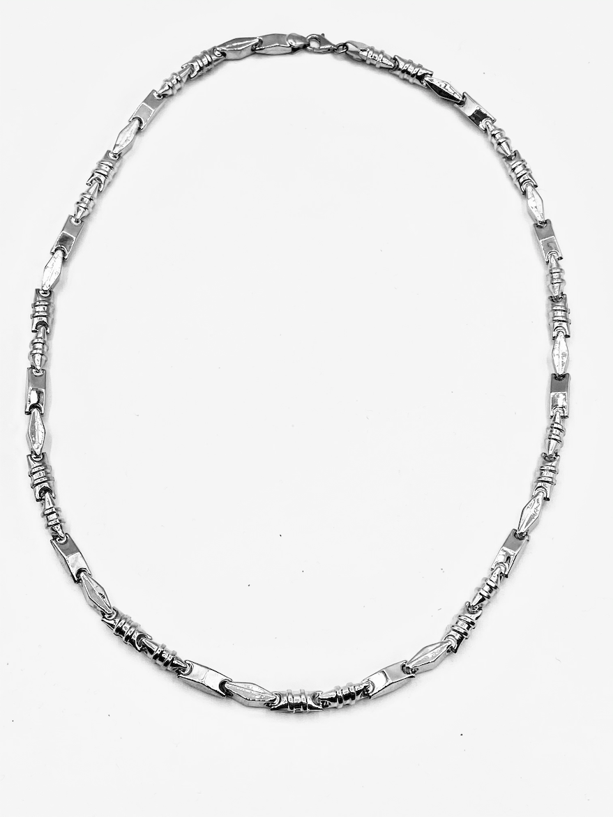 Modern fazonú, ezüst, férfi nyaklánc.